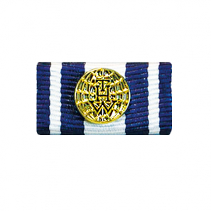 - Ordensspange Oberteil dunkelblau mit 3 weissen Streifen- Auflage rund, Durchmesser 10 mm- Unterteil mit Sicherheitsnadel
